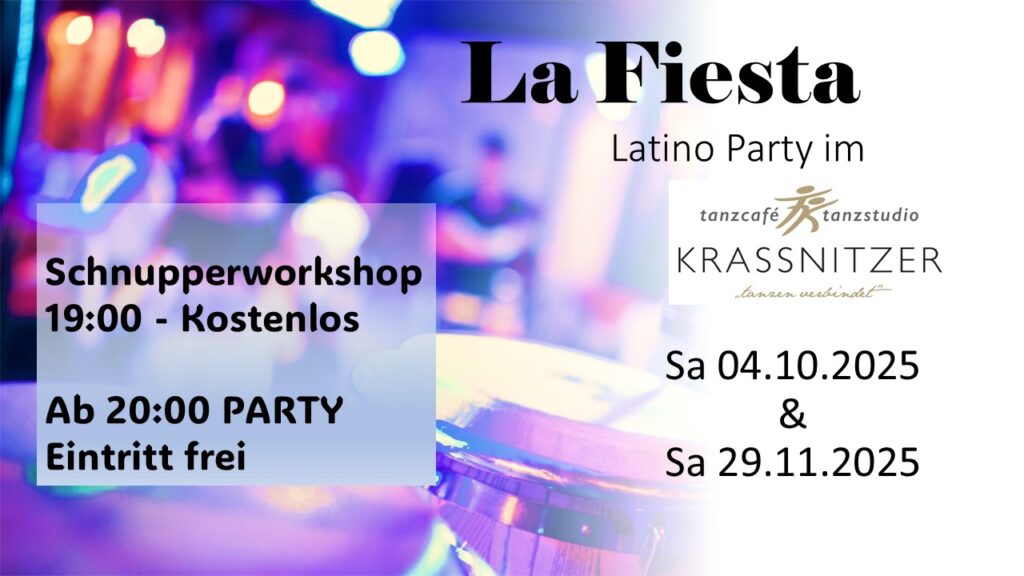 einmal im Quartal am Samstag von 19:00 Uhr bis 00:00 Uhr: Latino Party (Salsa, Bachata, Merengue, …)
