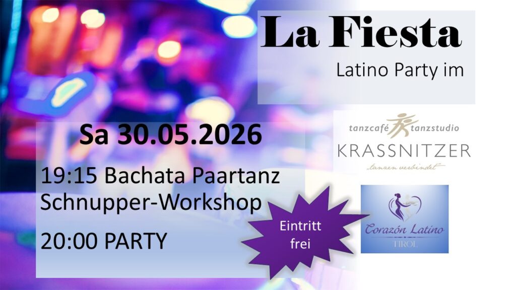 einmal im Quartal am Samstag von 19:00 Uhr bis 24:00 Uhr: Latino Party (Salsa, Bachata, Merengue, …)